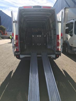 Nuestros vehículos también están adaptados con barras para llevar ropa colgada.